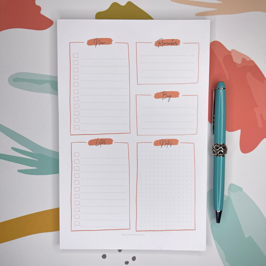 Productivity Planner Pad • 8.5" x 5.5" • 50 sheets • Coral