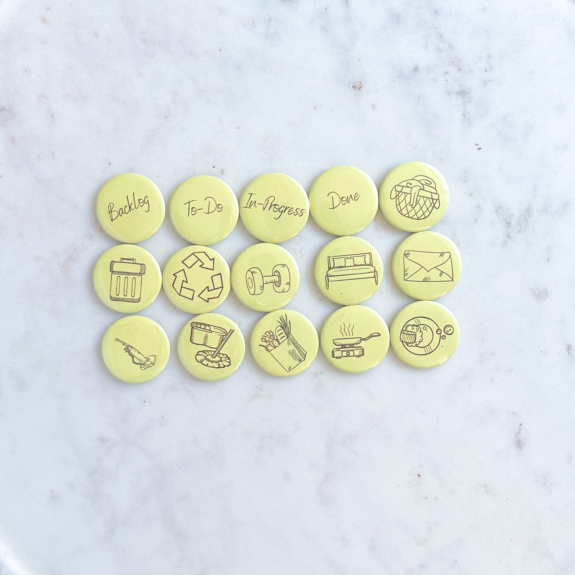 Set of 15 Productivity Magnets to build your task management board at home using your fridge or magnetic board.