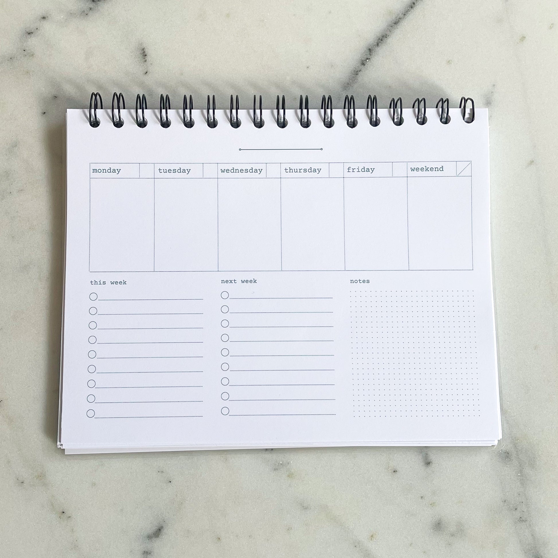 - Weekly View includes two to-do list columns one for this week and the other for next week, as well as a dot grid section for notes